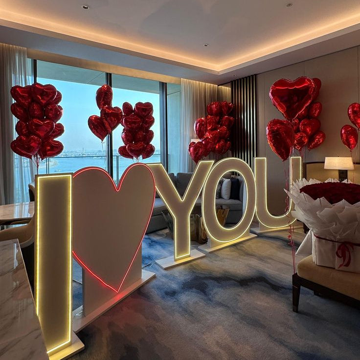 Make your declaration of love truly unforgettable with our luxurious 1.2m tall “I ❤️ YOU” LED letters. Perfect for proposals, anniversaries, birthdays, or romantic surprises, these statement lights create a breathtaking centerpiece that instantly elevates any space.