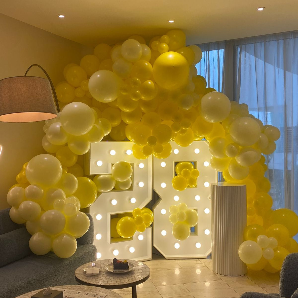 Level up your birthday bash or corporate event with our epic 1.25m marquee numbers adorned with a luxe balloon garland backing!