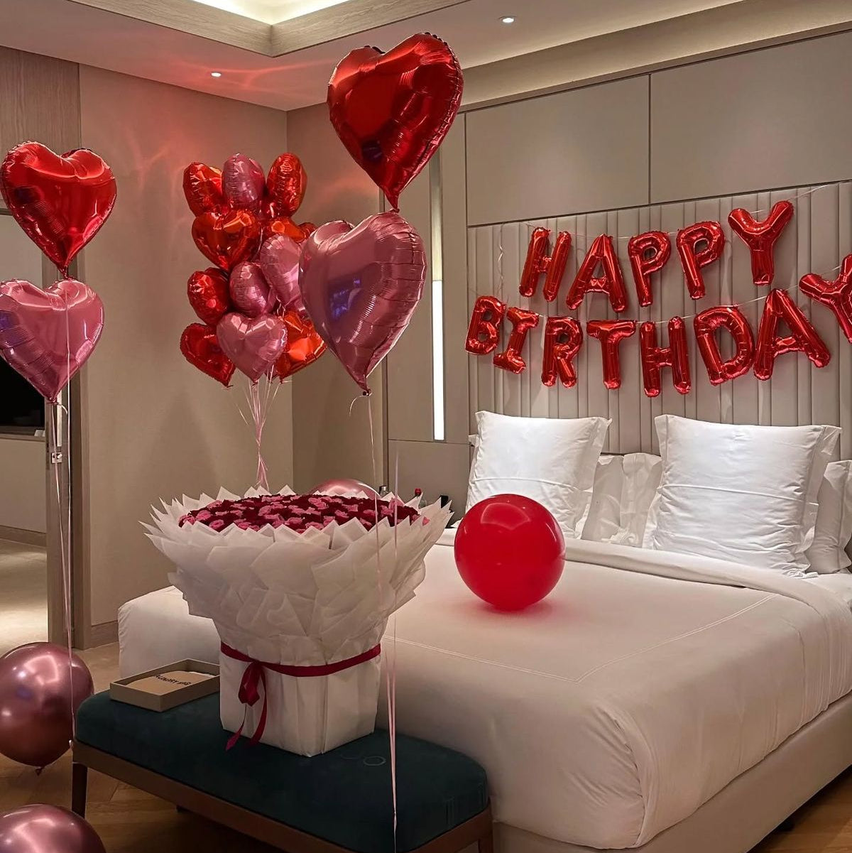 Say “I love you” in the most unforgettable way with our 100 Reasons Package, a breathtaking setup designed to fill the room with romance and luxury.